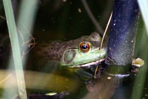 Meet Big Bull. He is a huge green frog that has taken up residence in our small pond. He cracks us up! All day he sits with his head peeking out croaking and calling and strutting his bad little stuff. Then, the minute we get even remotely close, his chicken self comes out and he dives into the water. It took me many tries to get this photo. A zoom lens did the trick, finally.