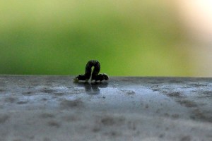 An inchworm, affectionately named “Inchy” that the kids caught on camera.  Just cruisin’ along doing its thing.