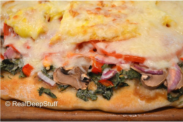Place dough on pizza pan or stone that has corn meal sprinkled on it. (To keep the dough from sticking to the pan)